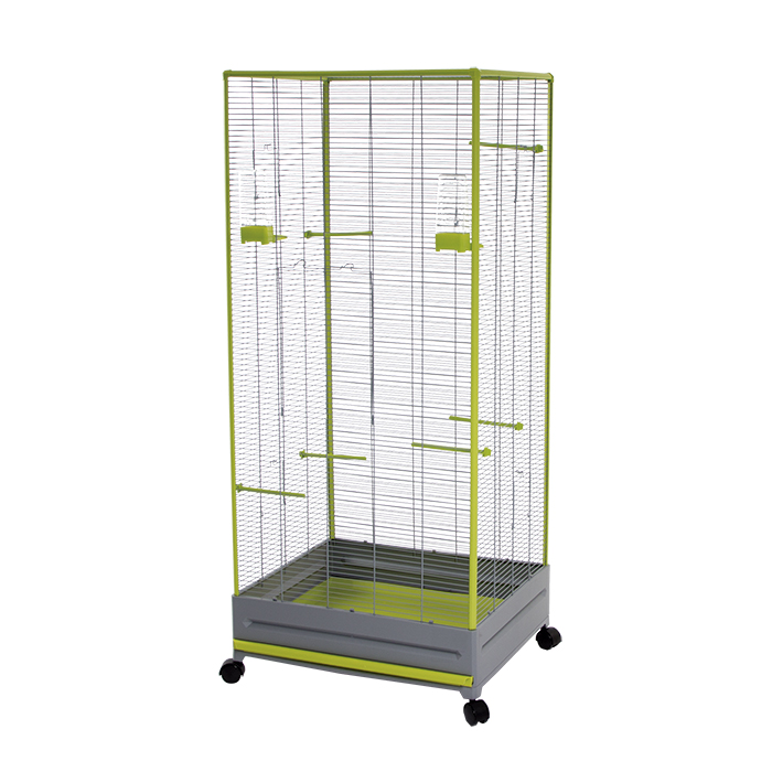 Fabricado en España, con pintura epoxi sin plomo. Jaula con bandeja extraíble, fácil de limpiar.